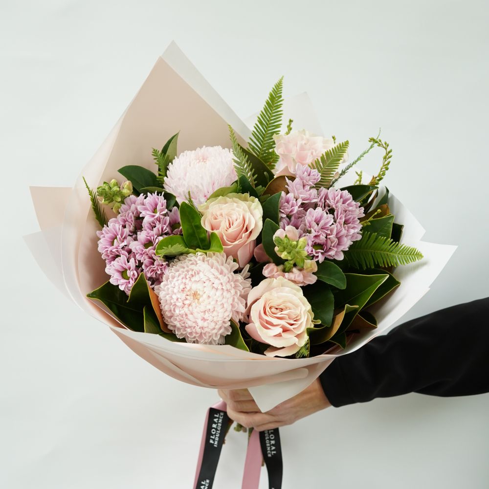 Introducing our Pastel Pretty Bouquet of Pink Chrysanthemums, Roses, and Snapdragons. This stunning flower bouquet is ideal for any occasion and is sure to delight anyone who receives it. Handcrafted with the utmost care and attention. This bouquet the perfect choice for a birthday, anniversary, or as a gesture of love and appreciation.